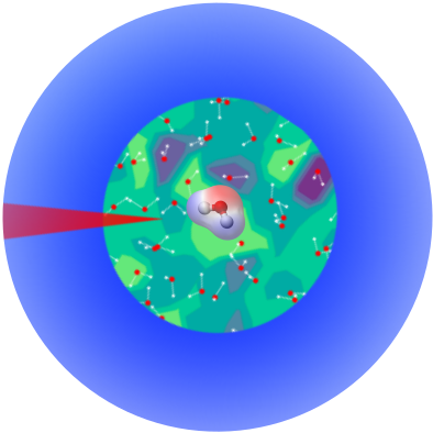 Nous réalisons des calculs de mécanique quantique/mécanique moléculaire (QM/MM) afin de modéliser l’intensité SHS résolue en polarisation des liquides, en quantifiant les différentes contributions au signal. Nous nous sommes concentrés sur l’eau et sur des mélanges méthanol/eau, mais nous visons à généraliser cette approche à d’autres liquides, en volume ou aux interfaces, afin de fournir une interprétation quantitative des intensités SHS en termes d’ordre moléculaire.